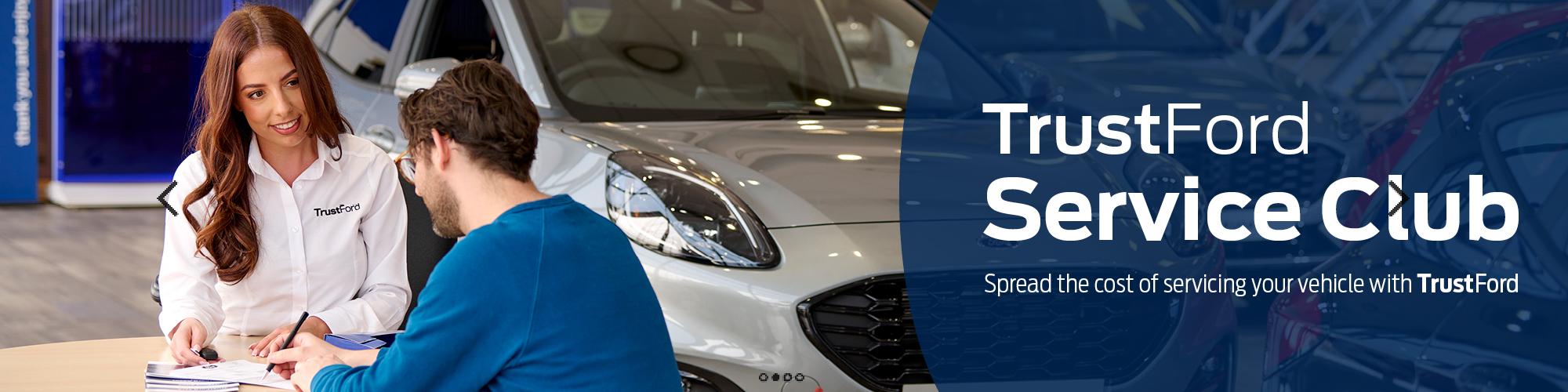 *Benefits apply for the duration of the plan. Service plans can be transferred to your next vehicle free of charge. A policy can be cancelled for an administration fee of £37.50+VAT. Payments and refunds will be calculated accordingly. Full terms and conditions can be found on the reverse of the service plan agreement and are available on request. The service plan covers the complete cost of your standard servicing, including parts and labour. Excludes normal wear and tear of parts for example tyres, brake pads and windscreen wipers. Please refer to your vehicle service book for information about servicing intervals. Service Club cannot be used in conjunction with any other promotion. Class 4 MOT valid for one year or the duration of the service plan only. Ford Roadside Assistance is valid from the date of service until the next scheduled service is due and applies to the serviced vehicle only. ** 10% Discount Excludes Tyres ***Does not include Air Con Deodoriser treatment.